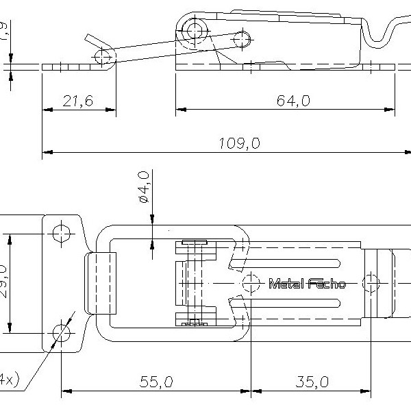 Fecho de ação rápida de tamanho grande com mola reta, adequado para travamentos que exigem grande esforço e com aplicações em diversas áreas industriais como: alimentícia, automotiva, moveleira, farmacêutica, etc.