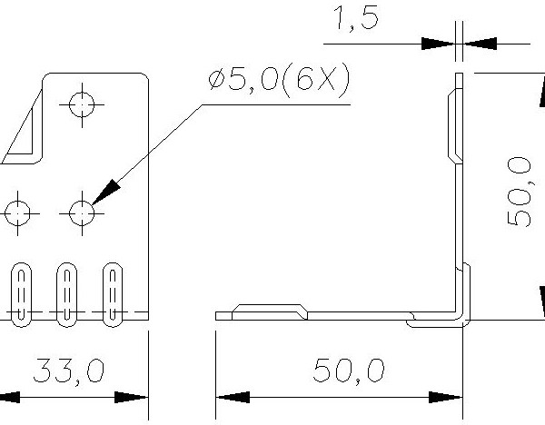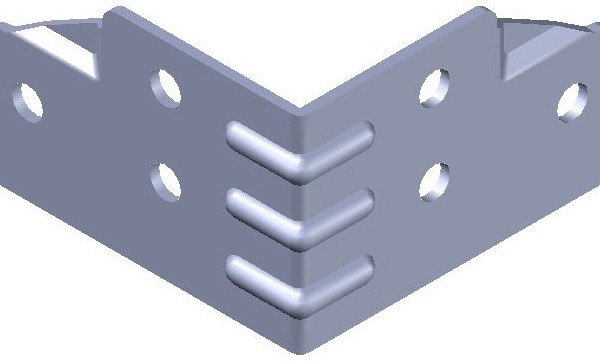 Mata-junta médio reforçado com três nervuras e rebaixos para alojamento de perfil de 1”, adequado para reforçar a união das laterais de cases médios.