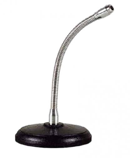 Suporte de microfone para mesa, com tubo flexível, cromado.